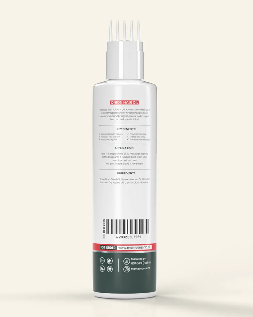 Nourishes scalp and hair with onion extract and almond oil