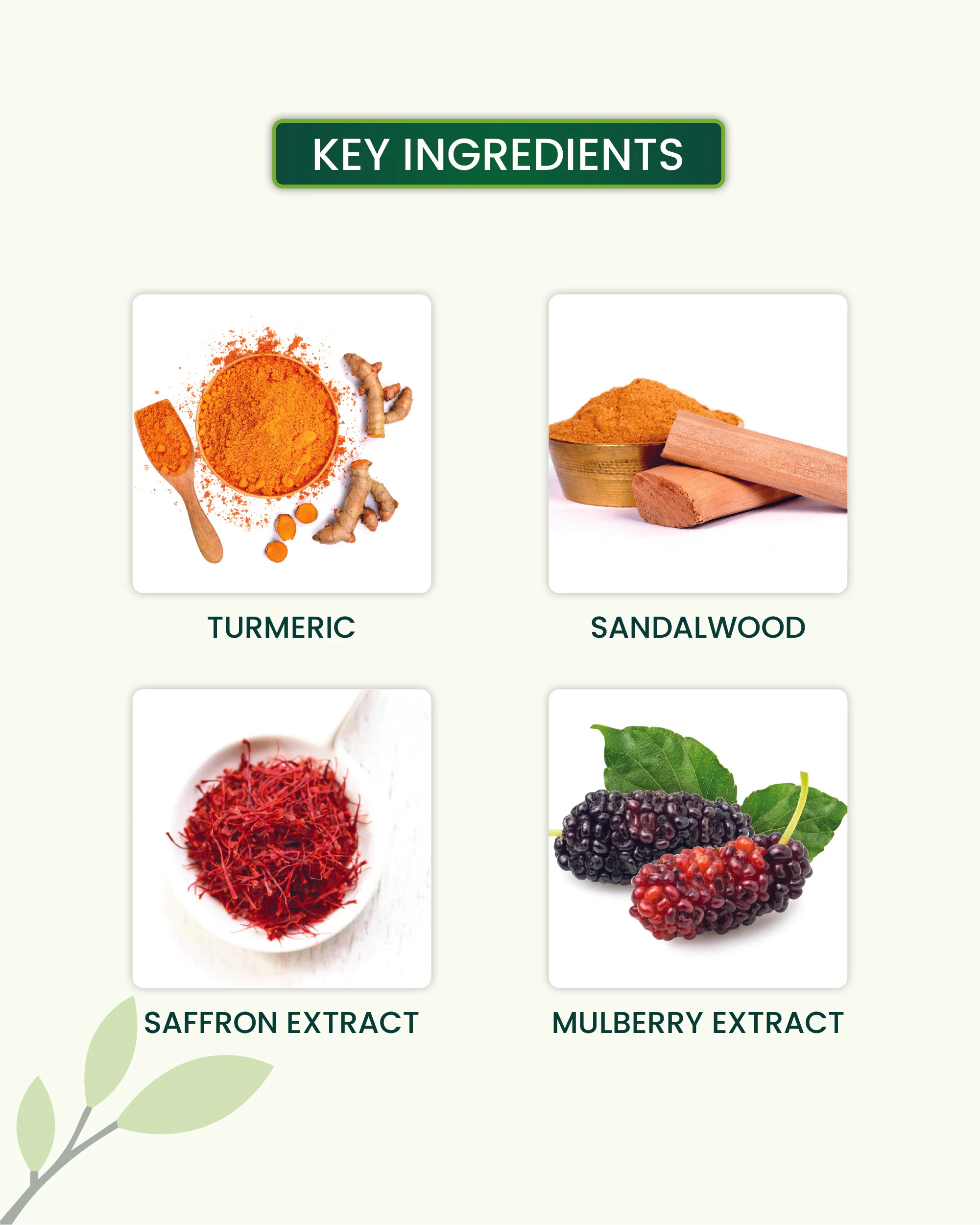 Infused with turmeric and saffron for instant glow and radiance